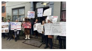 East Harlem tenants protest outside their building. They eventually won $133,000 in a lawsuit against their landlord and legally mandated repairs